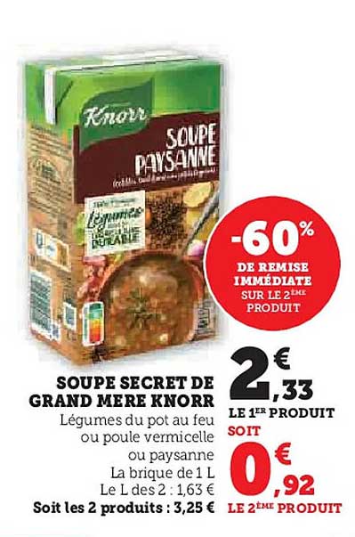 Offre de Soupes Secret De Grand Mère Knorr chez Hyper U