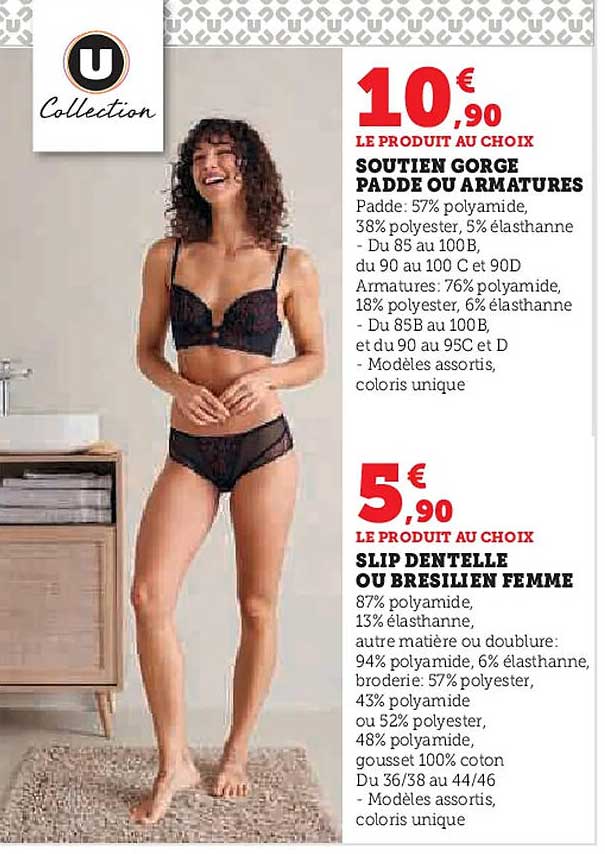 Découvrez l'offre de Soutien Gorge Padde Ou Armatures Slip Dentelle Ou Brésilien Femme chez Hyper U! Cette offre fantastique est maintenant disponible dans le nouveau catalogue de Hyper U. Profitez de cette occasion et économisez considérablement sur votre achat.