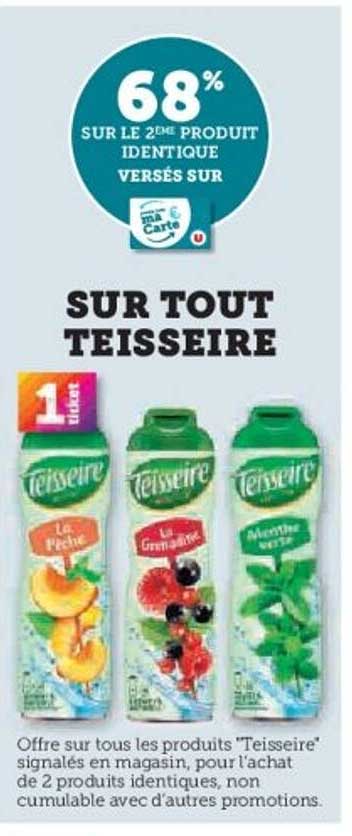Découvrez une offre exceptionnelle sur tous les produits Teisseire ! Du 14 au 19 octobre 2025, bénéficiez de 68% de réduction sur le deuxième produit identique acheté. Que vous soyez en quête de saveurs fruitées ou de sirops originaux, cette promotion est idéale pour agrémenter vos boissons et desserts.