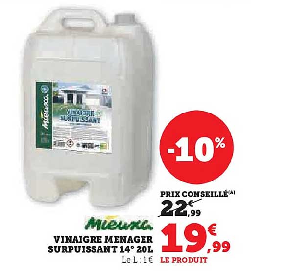 Offre de Vinaigre Menager Surpuissant 14° 20L chez Hyper U
