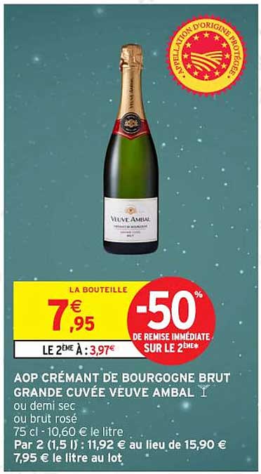 Découvrez l'offre de Aop Crémant De Bourgogne Brut Grande Cuvée Veue Ambal chez Intermarché Contact! Cette offre fantastique est maintenant disponible dans le nouveau catalogue de Intermarché Contact. Profitez de cette occasion et économisez considérablement sur votre achat.