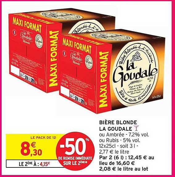 Découvrez l'offre de Bière Blonde La Goudale chez Intermarché Contact! Cette offre fantastique est maintenant disponible dans le nouveau catalogue de Intermarché Contact. Profitez de cette occasion et économisez considérablement sur votre achat.