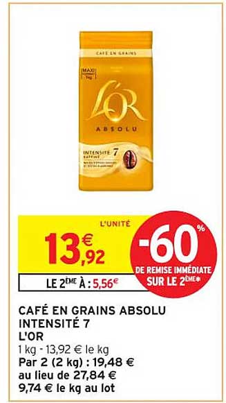 Offre de Café En Grains Absolu Intensité 7 L'or chez Intermarché Contact