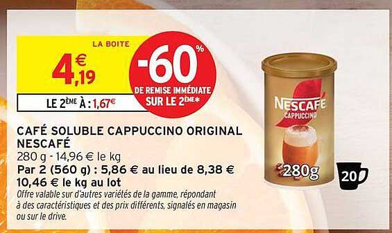 Offre de Café Soluble Cappuccino Original Nescafé chez Intermarché Contact