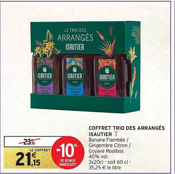 Découvrez l'offre de Coffret Trio Des Arrangés Isautier chez Intermarché Contact! Cette offre fantastique est maintenant disponible dans le nouveau catalogue de Intermarché Contact. Profitez de cette occasion et économisez considérablement sur votre achat.
