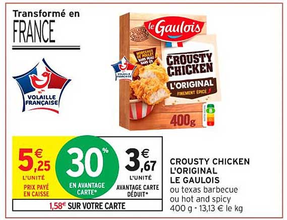 Découvrez l'offre exceptionnelle sur le Crousty Chicken L'Original de Le Gaulois, disponible sur cette page. Avec une qualité premium et un goût délicieux, ce poulet finement épicé est parfait pour tous vos repas. Que ce soit pour un dîner en famille ou un repas entre amis, ce produit s'invite à toutes vos tables !
