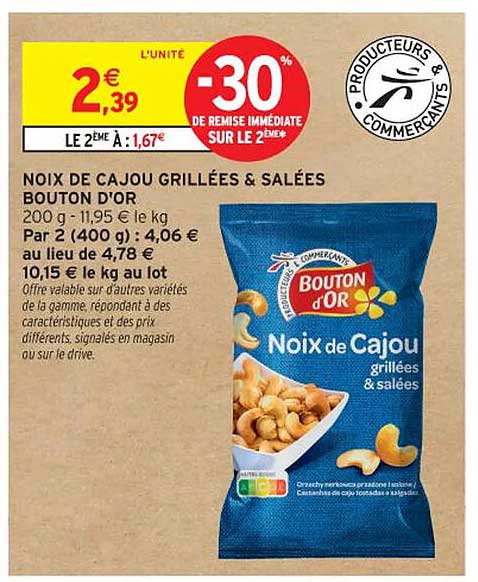 Offre de Noix De Cajou Grillées & Salées Bouton D'or chez Intermarché Contact