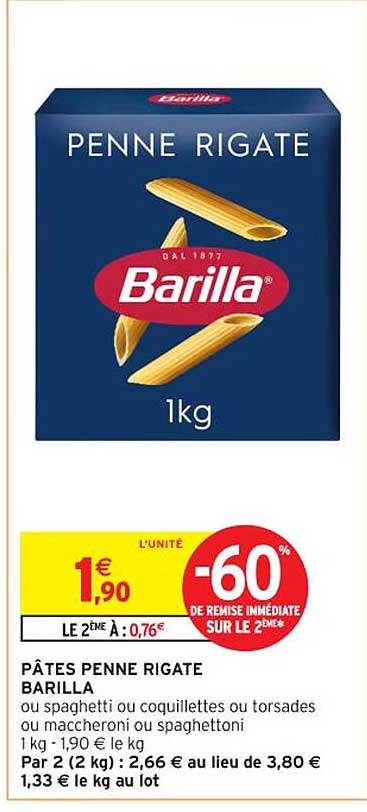 Offre de Pâtes Penne Rigate Barilla chez Intermarché Contact