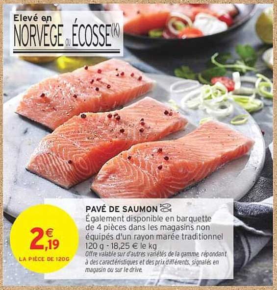 Découvrez notre pavé de saumon, fraîchement élevé en Norvège ou en Écosse, proposé à un prix exceptionnel de seulement 2,19 € la pièce de 120 g. C'est une occasion en or pour les amateurs de poisson et de cuisine saine, de déguster un ingrédient à la fois savoureux et nutritif, idéal pour vos repas quotidiens. Profitez de la période de promotion qui s'étend du 8 au 21 avril 2025 pour vous faire plaisir !