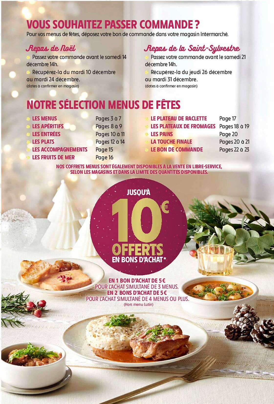Découvrez l'offre de Repas De Noël chez Intermarché Contact! Cette offre fantastique est maintenant disponible dans le nouveau catalogue de Intermarché Contact. Profitez de cette occasion et économisez considérablement sur votre achat.
