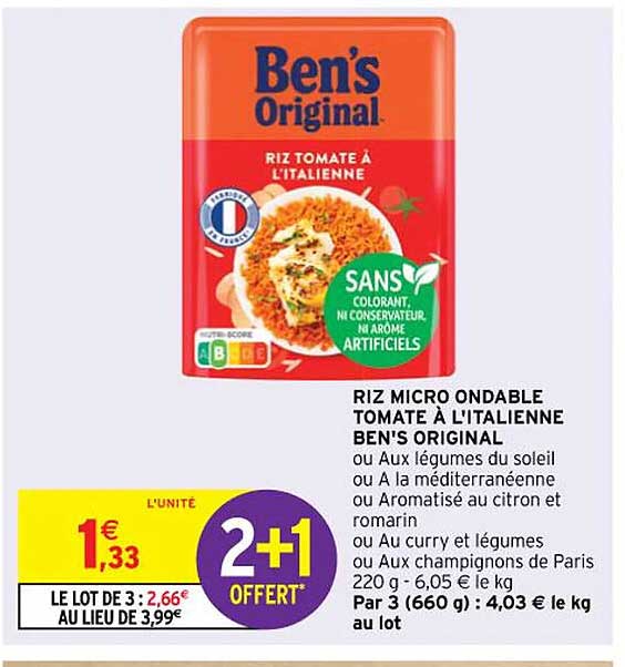 Offre de Riz Micro Ondable Tomate À L'italienne Ben's Original chez Intermarché Contact