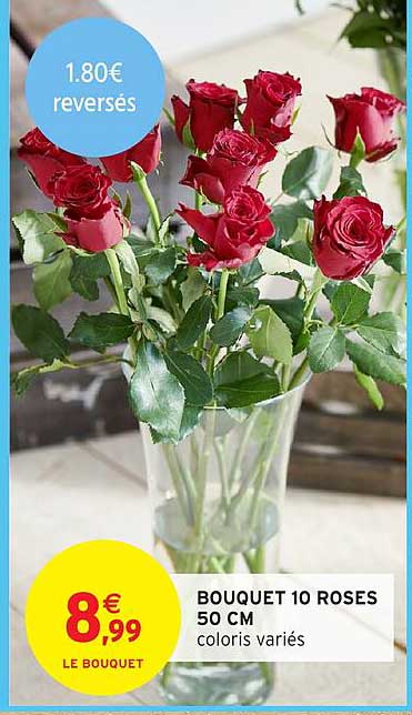 Découvrez dès maintenant la offre BOUQUET 10 ROSES 50 CM coloris variés dans le catalogue de Intermarché Express. Cette offre est valable du 07/10/2025 au 19/10/2025.