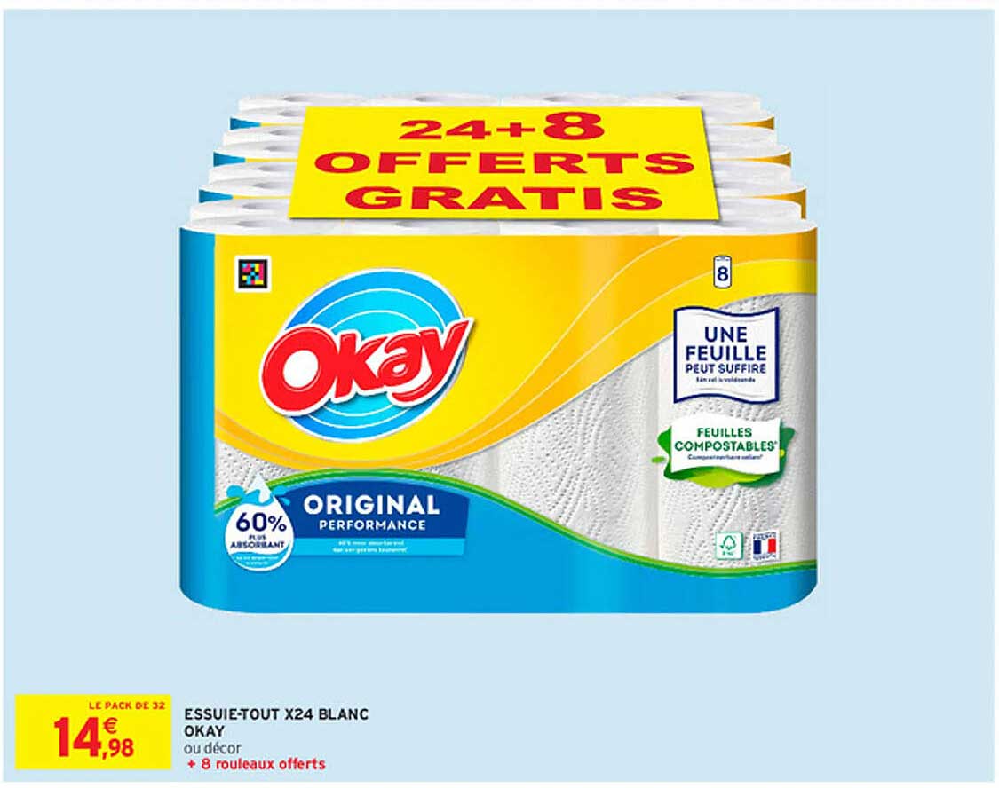 Offre de Essuie-Tout X24 Blanc Okay chez Intermarché Express