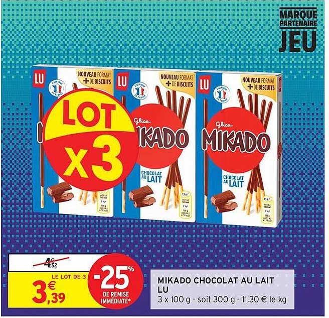Offre de Mikado Chocolat Au Lait Lu chez Intermarché Express