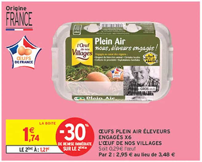 Découvrez dès maintenant la offre ŒUFS PLEIN AIR ÉLEVEURS ENGAGÉS X6 dans le catalogue de Intermarché Express. Cette offre est valable du 01/04/2025 au 13/04/2025.