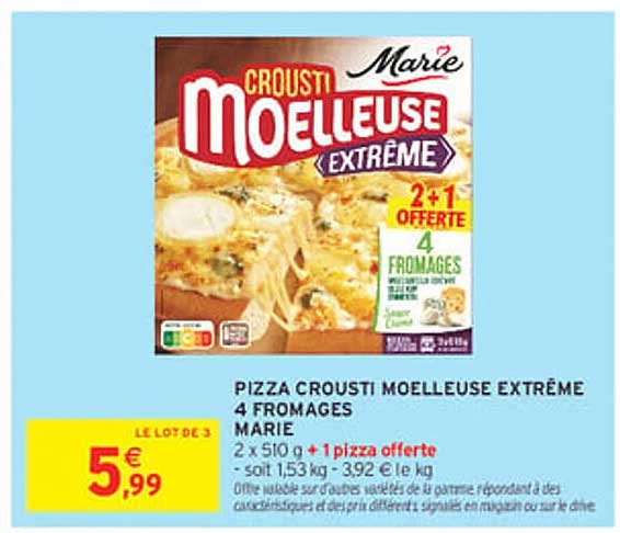 Offre de Pizza Crousti Moelleuse Extreme 4 Fromages Marie chez Intermarché Express
