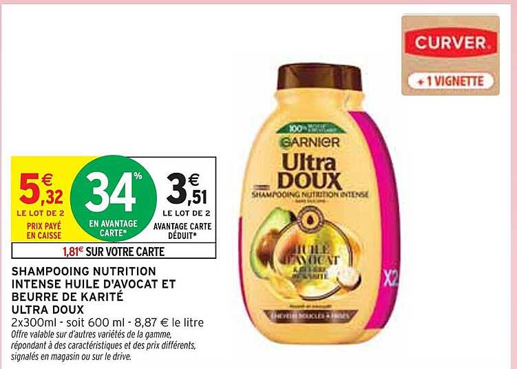 Offre de Shampooing Nutrition Intense Huile D'avocat Et Beurre De Karité Ultra Doux chez Intermarché Express