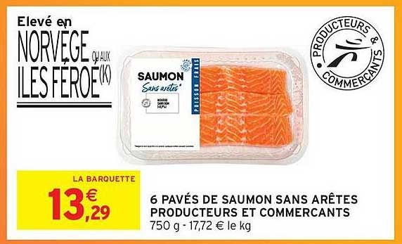 Offre de 6 Pavés De Saumon Sans Arêtes Producteurs Et Commercants chez Intermarché Hyper