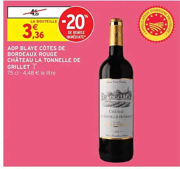 Profitez d'une réduction exceptionnelle de 20% sur le Château La Tonnelle de Grillet, un vin rouge AOP Blaye Côtes de Bordeaux. Ce vin, au prix redescendu à seulement 3,36 €, est non seulement un excellent choix pour accompagner vos repas, mais il représente également une opportunité à ne pas manquer pour les amateurs de bons crus.