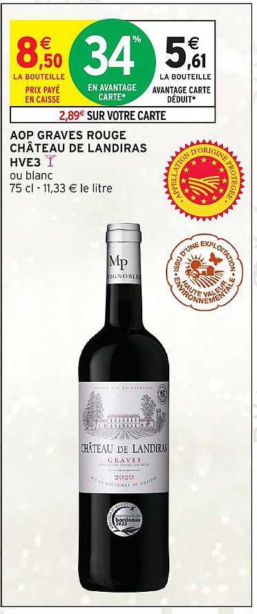 Offre de Aop Graves Rouge Château De Landiras Hve3 chez Intermarché Hyper