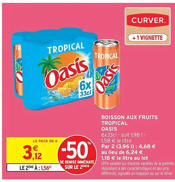 Profitez d'une occasion exceptionnelle avec cette promotion sur le pack de 6 canettes de Boisson aux Fruits Tropical Oasis. Parfait pour se désaltérer lors des journées ensoleillées ou pour accompagner vos repas, cette boisson est un incontournable des étés français. N'attendez plus pour découvrir cette offre irrésistible et faites le plein de fraîcheur, disponible ici !