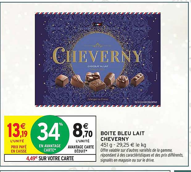 Découvrez dès maintenant la offre BOITE BLEU LAIT CHEVERNY dans le catalogue de Intermarché Hyper. Cette offre est valable du 03/12/2024 au 15/12/2024.