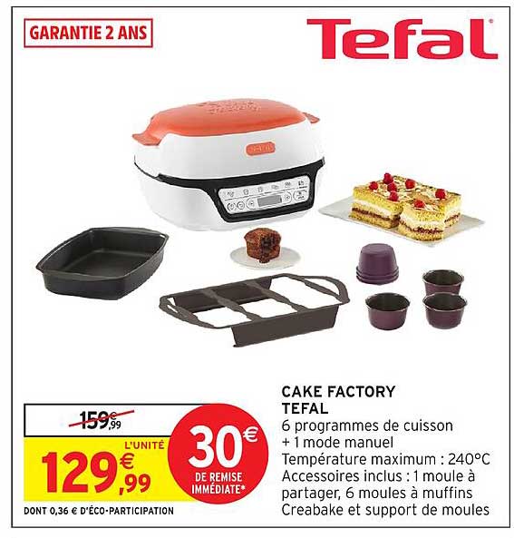 Découvrez dès maintenant la offre CAKE FACTORY TEFAL dans le catalogue de Intermarché Hyper. Cette offre est valable du 13/11/2025 au 23/11/2025.
