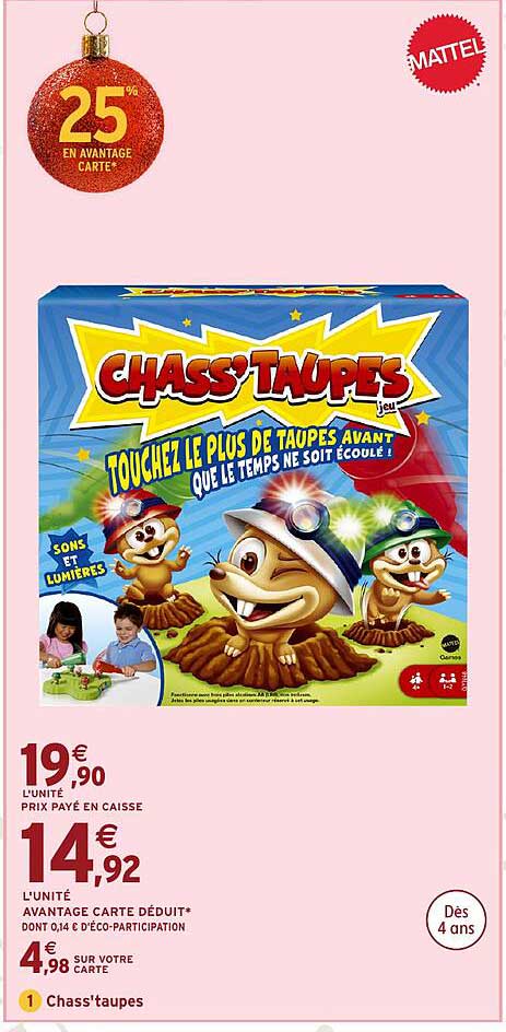 Découvrez dès maintenant la offre Chass'taupes dans le catalogue de Intermarché Hyper. Cette offre est valable du 22/10/2024 au 08/12/2024.
