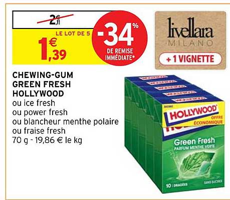 Offre de Chewing-Gum Green Fresh Hollywood chez Intermarché Hyper