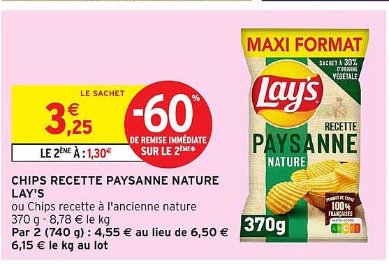 Offre de Chips Recette Paysanne Nature Lay's chez Intermarché Hyper