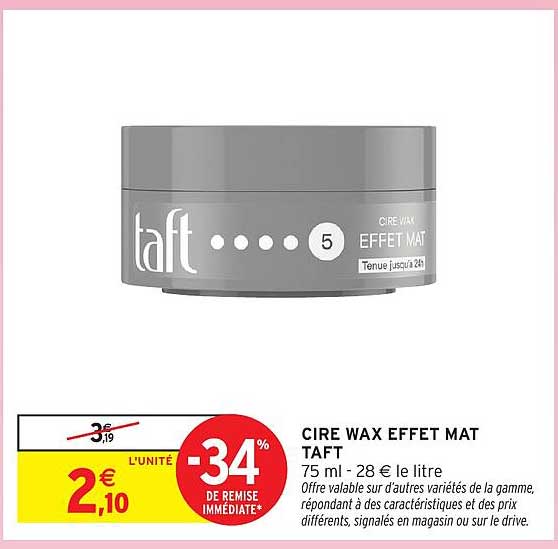 Offre de Cire Wax Effet Mat Taft chez Intermarché Hyper