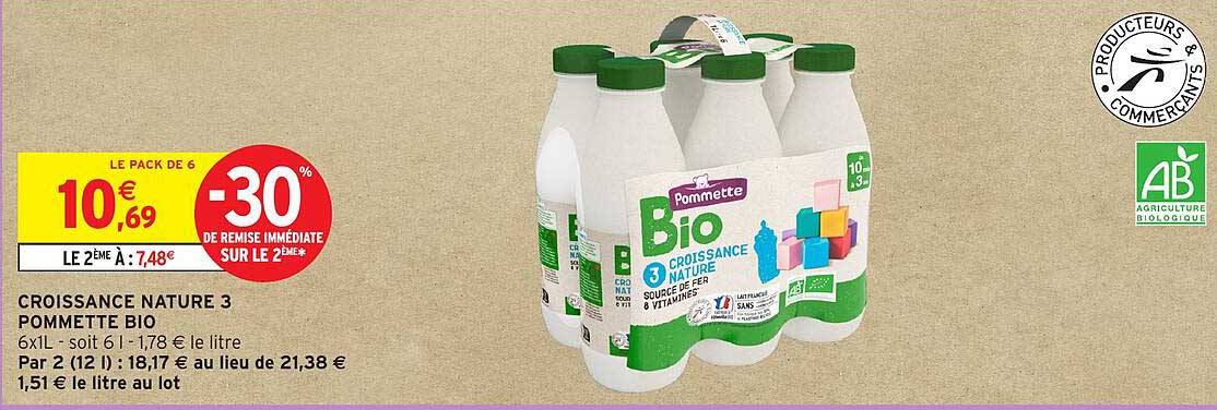 Découvrez l'offre de Croissance Nature 3 Pommette Bio chez Intermarché Hyper! Cette offre fantastique est maintenant disponible dans le nouveau catalogue de Intermarché Hyper. Profitez de cette occasion et économisez considérablement sur votre achat.