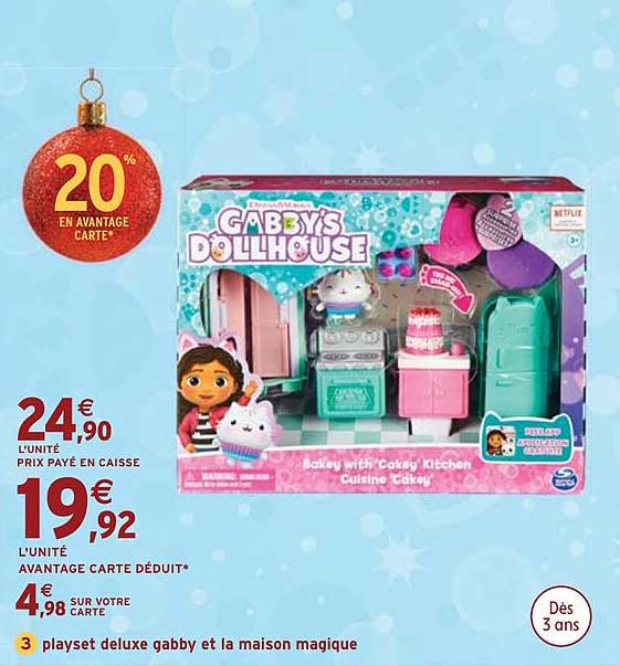 Découvrez dès maintenant la offre Gabby's Dollhouse : Bakey with Cakey Kitchen Cuisine 'Cakey' dans le catalogue de Intermarché Hyper. Cette offre est valable du 22/10/2024 au 08/12/2024.