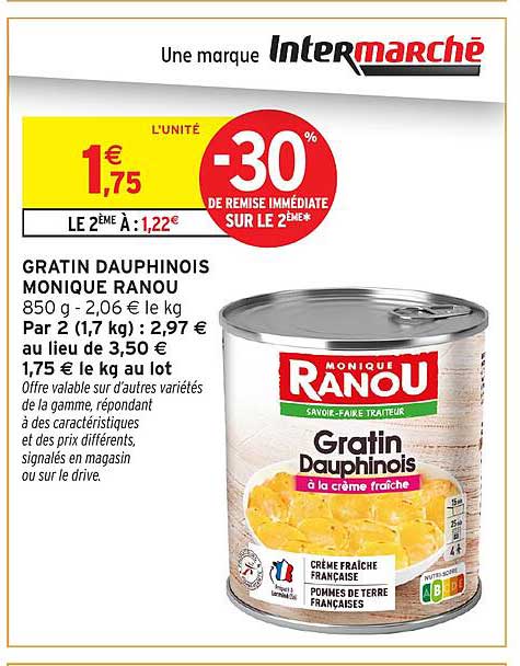 Découvrez dès maintenant la offre GRATIN DAUPHINOIS MONIQUE RANOU dans le catalogue de Intermarché Hyper. Cette offre est valable du 04/11/2025 au 16/11/2025.