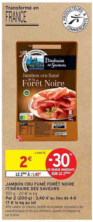 Offre de Jambon Cru Fumé Forêt Noire Itinéraire Des Saveurs chez Intermarché Hyper