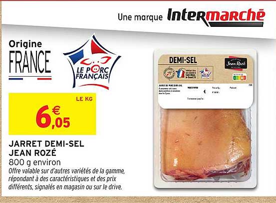 Découvrez dès maintenant la offre JARRET DEMI-SEL JEAN ROZÉ dans le catalogue de Intermarché Hyper. Cette offre est valable du 07/10/2025 au 19/10/2025.