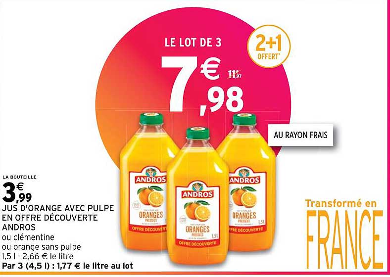 Offre de Jus D'orange Avec Pulpe En Offre Découverte Andros chez Intermarché Hyper