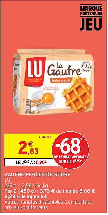 Offre de La Gaufre Perles De Sucre Lu chez Intermarché Hyper