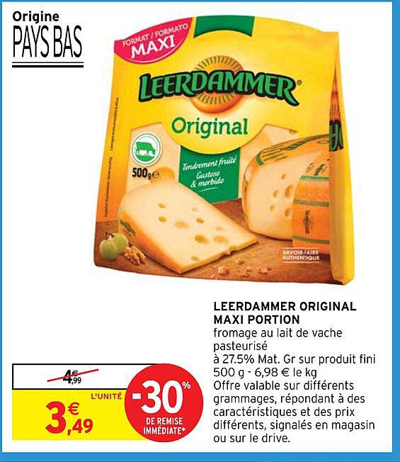 Découvrez l'offre de Leerdammer Original Maxi Portion chez Intermarché Hyper! Cette offre fantastique est maintenant disponible dans le nouveau catalogue de Intermarché Hyper. Profitez de cette occasion et économisez considérablement sur votre achat.