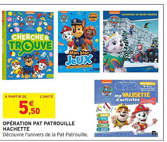 Découvrez l'offre de Opération Pat Patrouille Hachette chez Intermarché Hyper! Cette offre fantastique est maintenant disponible dans le nouveau catalogue de Intermarché Hyper. Profitez de cette occasion et économisez considérablement sur votre achat.