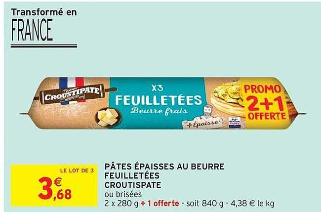 Offre de Pâtes Épaisses Au Beurre Feuilletées Croustipate chez Intermarché Hyper