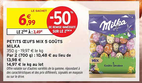 Offre de Petits Œufs Mix 5 Goûts Milka chez Intermarché Hyper
