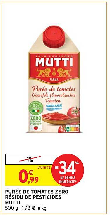 Offre de Purée De Tomates Zéro Résidu De Pesticides Mutti chez Intermarché Hyper