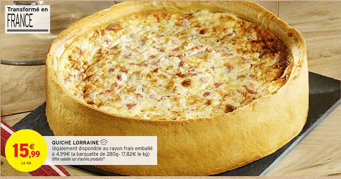 Proposée à un prix de seulement 15,99 € le kg, cette offre constitue une belle opportunité pour régaler vos proches sans trop dépenser. Comparée à d'autres plats à emporter, la quiche lorraine demeure une option économique qui ne fait aucune concession sur le goût.
