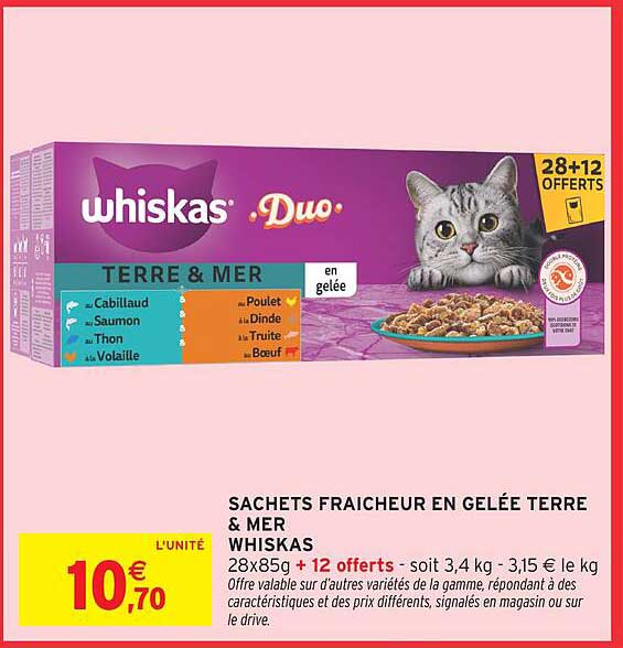 Offre de Sachets Fraicheur En Gelée Terre & Mer Whiskas chez Intermarché Hyper