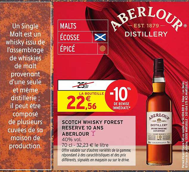 Découvrez dès maintenant la offre SCOTCH WHISKY FOREST RESERVE 10 ANS ABERLOUR dans le catalogue de Intermarché Hyper. Cette offre est valable du 21/10/2025 au 02/11/2025.