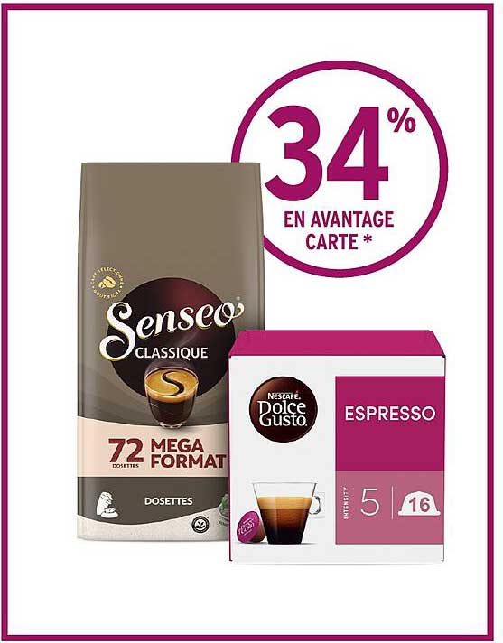 Offre de Senseo Classique 72 Dosettes Méga Format Nescafé Dolce Gusto Espresso chez Intermarché Hyper
