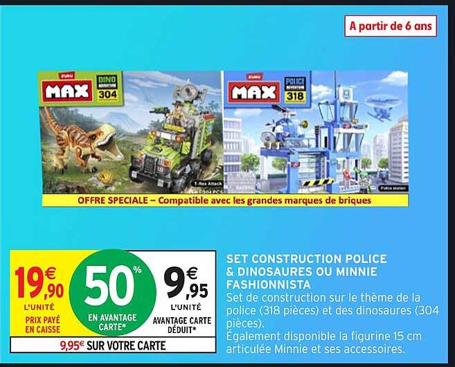 Offre de Set Construction Police & Dinosaures Ou Minnie Fashionista chez Intermarché Hyper