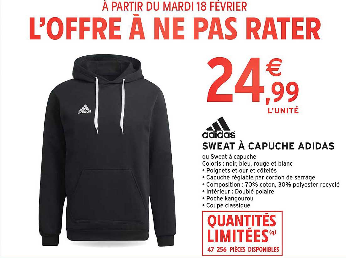 Offre de Sweat À Capuche Adidas chez Intermarché Hyper