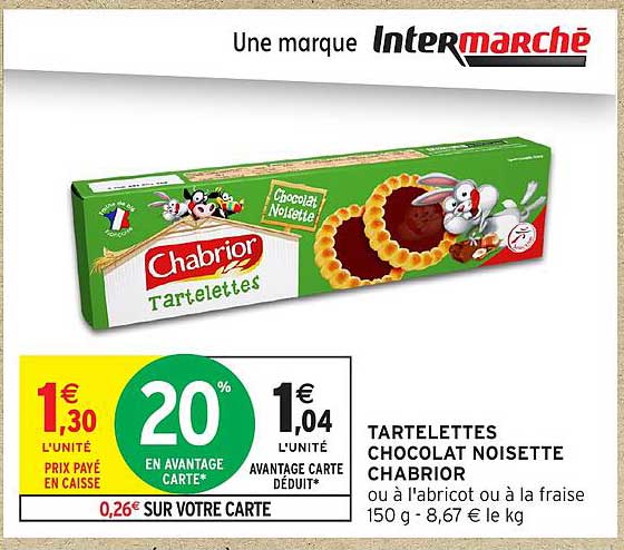 Offre de Tartelettes Chocolat Noisette Chabrior chez Intermarché Hyper
